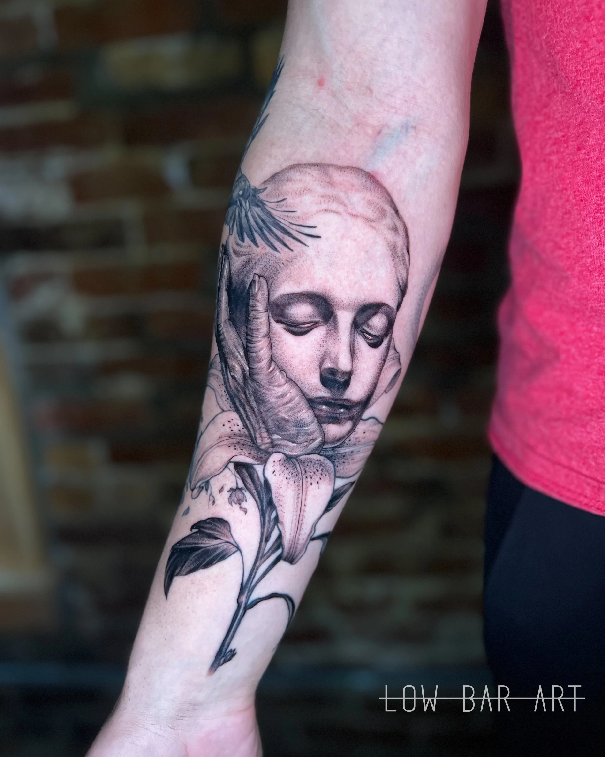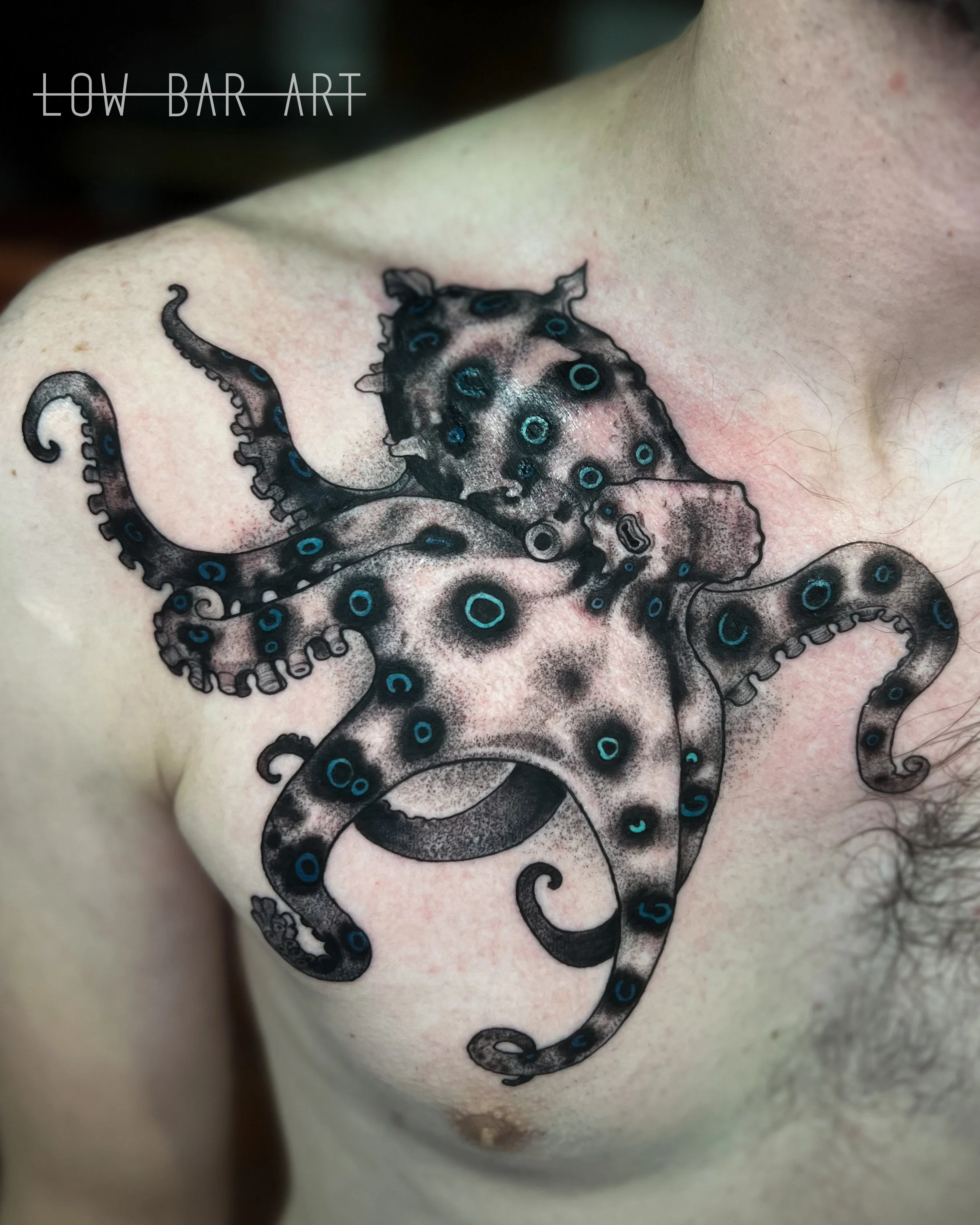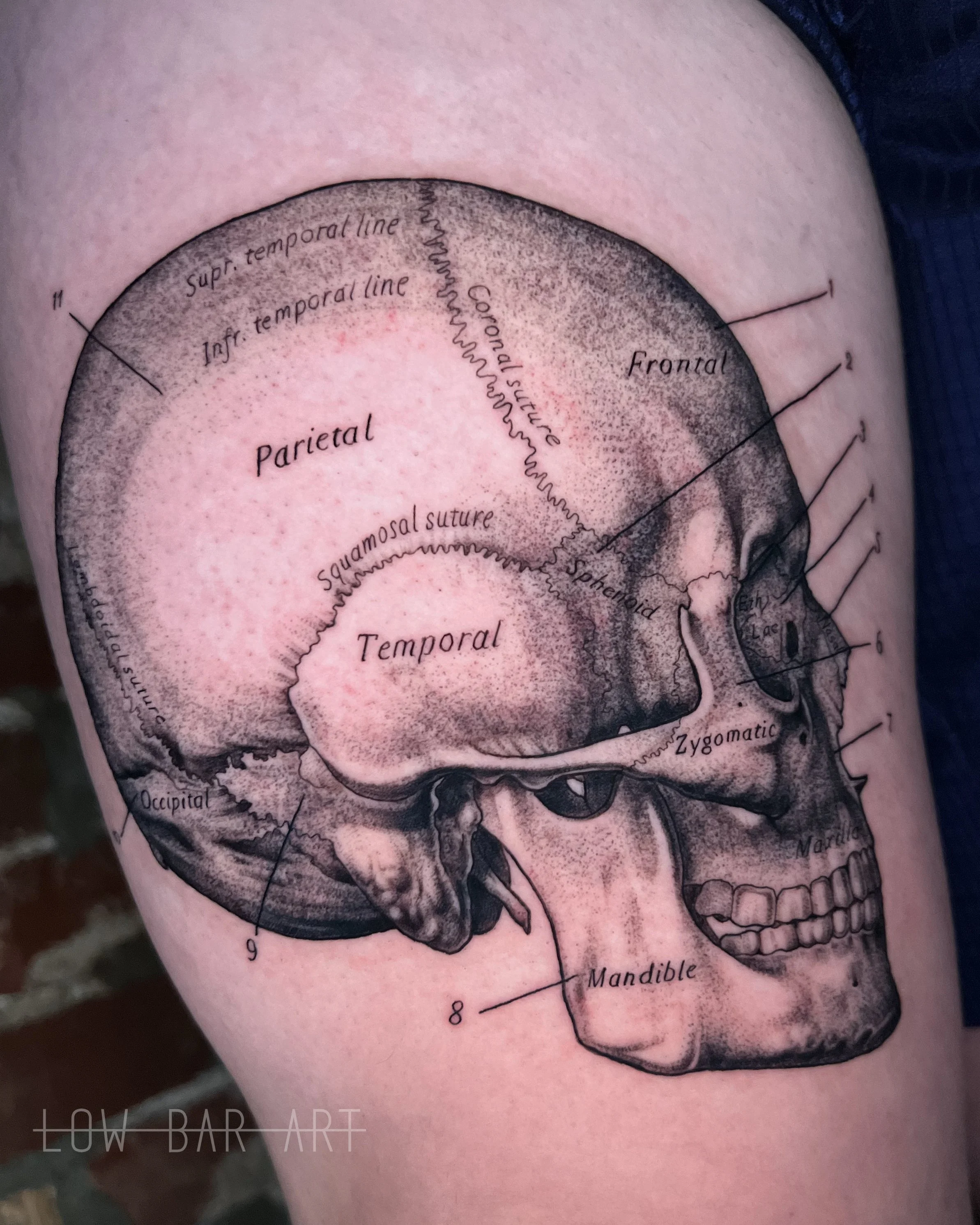 Luka Barlow Weinberger is an artist with a classical drawing and painting background from Laguna College of Art + Design. When they were little, Luka wanted to be a veterinarian, marine biologist, medical/scientific illustrator, and forensic pathologist. They have since managed to merge their simultaneous interests in organic creatures, art, science, and cutting people open into tattooing.
